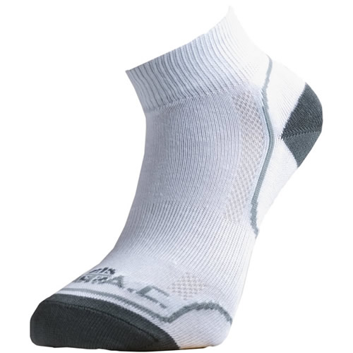 Version estivale des chaussettes à porter par temps chaud, avec un anneau de manchette au niveau des orteils pour un ajustement parfait au pied. La chaussette est dotée d'un rembourrage qui épouse la forme de la cheville et des bords extérieurs du pied au niveau des orteils afin de protéger les parties exposées des frottements causés par certaines chaussures d'été ouvertes. La technologie utilisant des fibres d'argent dans la structure du tissu assure des effets antibactériens. Ces chaussettes de qualité conviennent pour exercer une profession dans des conditions difficiles.