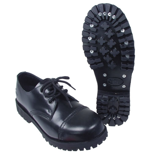 Chaussures basses élégantes entièrement en cuir avec embout en acier. La tige et la doublure sont en cuir de haute qualité. La semelle entièrement en caoutchouc est en outre vissée à l'aide de vis en acier. Laçage à 3 œillets.
