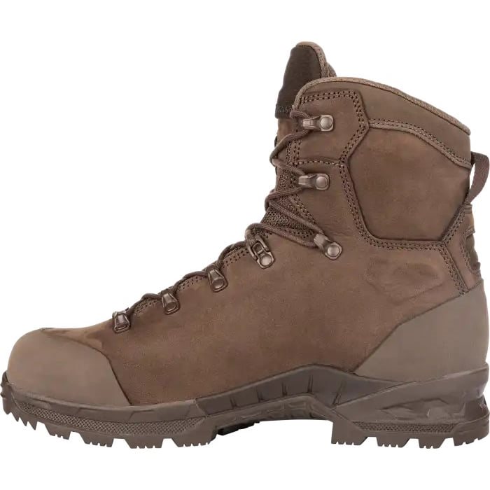 La tige de la chaussure est composée à environ 75 % de cuir nubuck de haute qualité, particulièrement résistant aux conditions extérieures, et à 25 % de nylon Cordura® résistant à l'abrasion et respirant. Les chevilles des chaussures sont équipées de Poron, un matériau révolutionnaire qui absorbe parfaitement les chocs, les vibrations et les secousses. La semelle intermédiaire de la chaussure est en polyuréthane haute densité, la voûte plantaire dispose d'un soutien intégré. Le laçage de la chaussure est à deux zones, il peut être réglé séparément à l'avant et à l'horizontale.