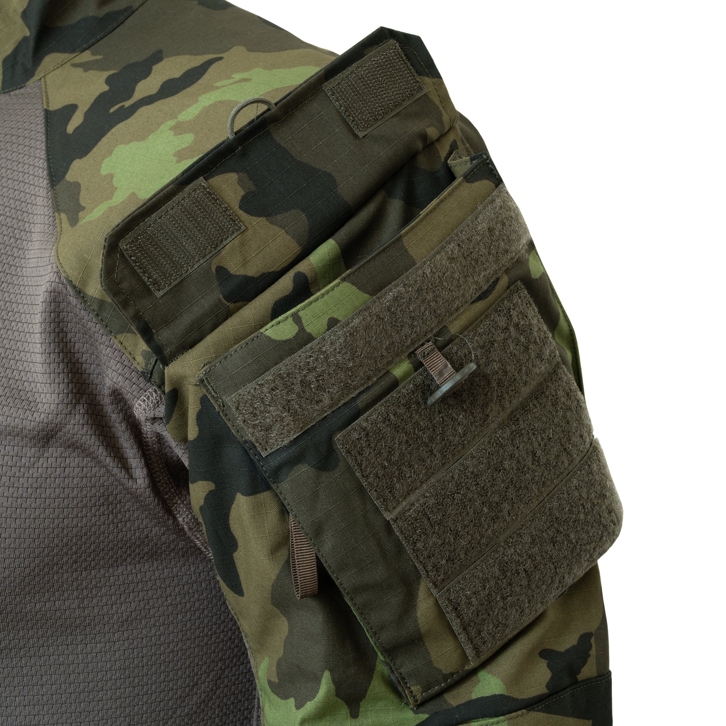 Développé selon le modèle britannique, mais en tenant compte de l'expérience de combat tchèque, les soldats tchèques n'avaient jusqu'à présent pas de produit similaire à leur disposition et étaient contraints, lors de missions à l'étranger, d'utiliser des chemises d'origine étrangère à la place de blouses inconfortables, le plus souvent britanniques en raison de la similitude du motif de camouflage. britanniques. Dès la commande, les suggestions et les propositions des soldats tchèques ont été prises en compte, et la série zéro a été soumise pour commentaires aux membres d'une unité non identifiée de Prostějov. Par rapport au modèle britannique, elle comporte donc un nombre considérable d'améliorations mineures. Les premières chemises sont déjà utilisées au combat en Afghanistan par les membres de la 601.SSS et de la 3.OMLT. une utilisation opérationnelle en Afghanistan par les membres du 601.SSS et du 3.OMLT.