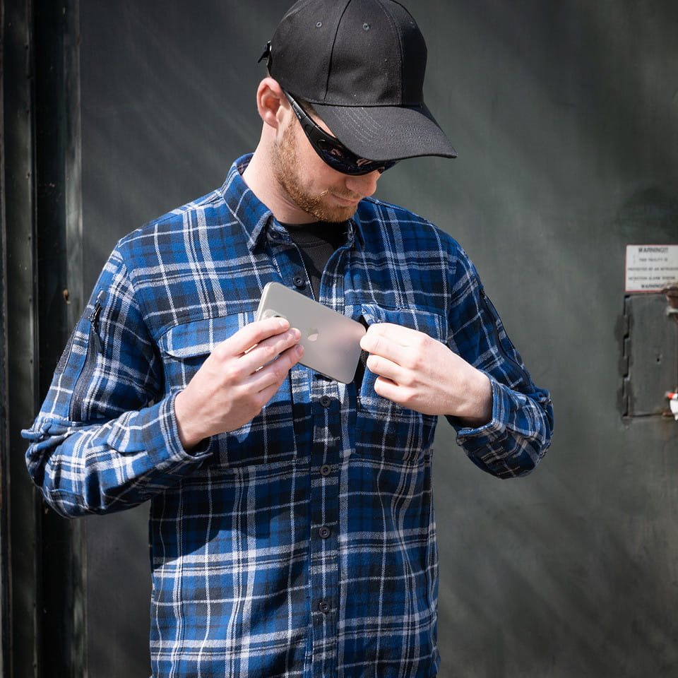 Chemise légère confectionnée en coton flanelle doux et agréable au toucher. Cette chemise est idéale pour un usage quotidien, que ce soit en voyage, en ville, à la campagne, au stand de tir, etc.