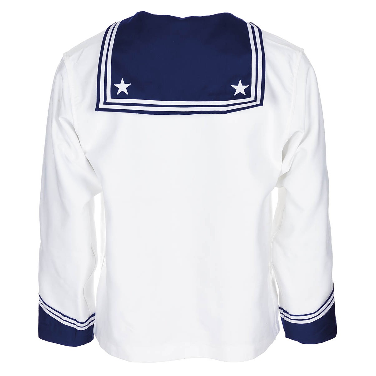Chemise pour marins provenant des soldes de l'armée italienne. Poche intérieure sur la poitrine gauche, col bleu avec 2 étoiles blanches dans le dos, bordure bleue sur les manches. Matériau solide et résistant. Produit neuf, stocké depuis longtemps. Plus d'informations