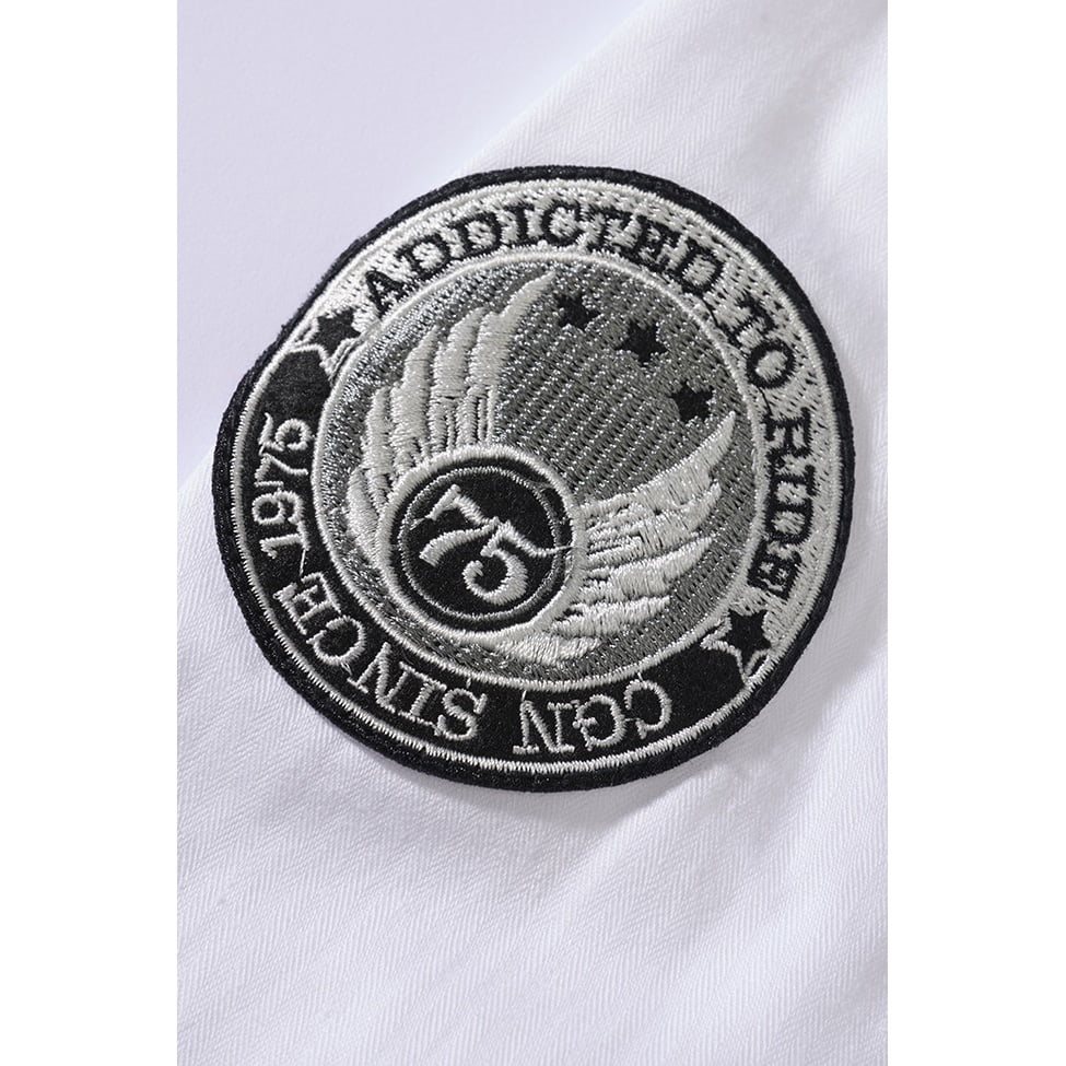 Chemise confortable à la coupe décontractée agréable. Elle est confectionnée en coton doux à l'aspect légèrement délavé. Elle se ferme à l'aide de boutons classiques et comporte deux poches sur la poitrine fermées par des rabats à boutons. L'apparence de la chemise est complétée par trois écussons, des épaulettes décoratives et le logo du fabricant à l'aspect métallique.