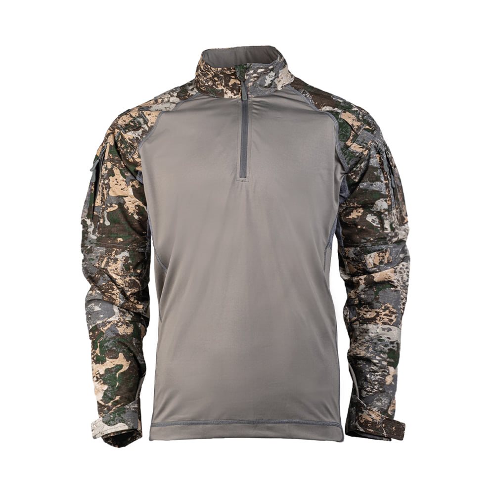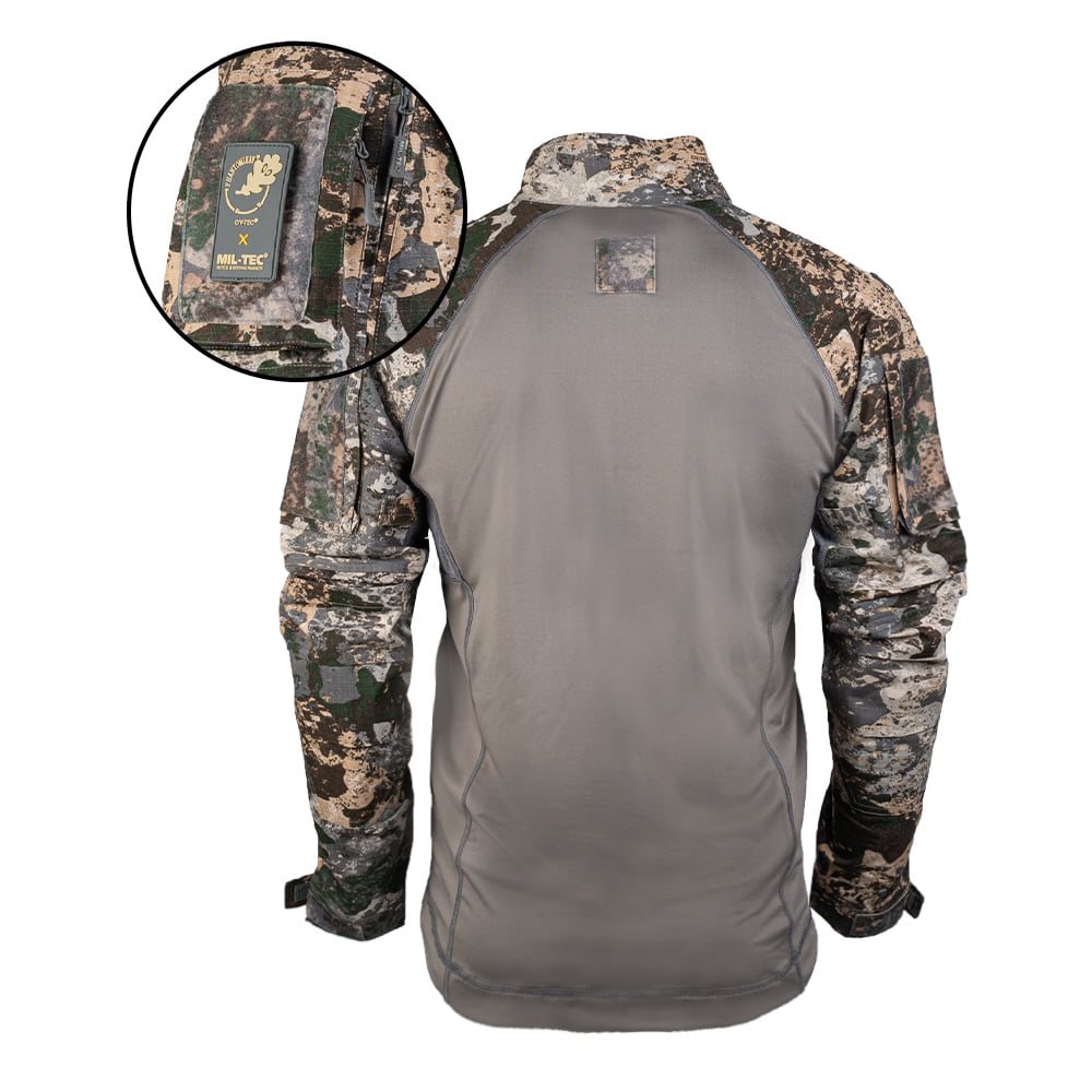 Chemise tactique à la coupe plus étroite, qui épouse parfaitement le corps sans restreindre les mouvements. Le corps de la chemise est fabriqué en coton de haute qualité, complété par un mélange de matériaux rip-stop sur les manches. Pour un confort maximal, les aisselles de la chemise sont dotées d'une maille en polyester qui permet d'évacuer l'excès de chaleur. Pour ranger de petits équipements ou des documents, vous pouvez utiliser les deux poches sur les épaules, qui sont complétées à l'extérieur par du velcro pour vos écussons VELCRO. Vous trouverez également un petit panneau VELCRO au dos de la chemise. Les coudes des manches sont renforcés et disposent d'un espace pour des protections en néoprène ou en mousse. Sur les épaules, vous trouverez plusieurs boucles pour fixer du matériel de camouflage supplémentaire. La fermeture éclair sur la poitrine est terminée par un protège-cou et une protection pour la barbe dans le col montant. Les poignets des manches peuvent être ajustés à l'aide de bandes velcro.