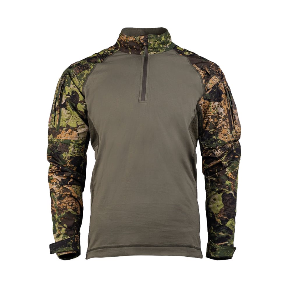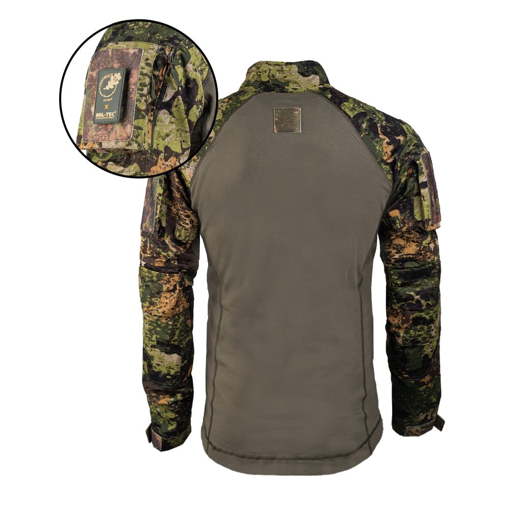 Chemise tactique à la coupe plus ajustée, qui épouse parfaitement le corps sans restreindre les mouvements. Le corps de la chemise est fabriqué en coton de haute qualité, complété par un mélange de matériaux rip-stop sur les manches. Pour un confort maximal, les aisselles de la chemise sont dotées d'une maille en polyester qui permet d'évacuer l'excès de chaleur. Pour ranger de petits équipements ou des documents, vous pouvez utiliser les deux poches sur les épaules, qui sont complétées à l'extérieur par du velcro pour vos écussons VELCRO. Vous trouverez également un petit panneau VELCRO au dos de la chemise. Les coudes des manches sont renforcés et disposent d'un espace pour des protections en néoprène ou en mousse. Sur les épaules, vous trouverez plusieurs boucles pour fixer du matériel de camouflage supplémentaire. La fermeture éclair sur la poitrine est terminée par un protège-cou et une protection pour la barbe dans le col montant. Les poignets des manches peuvent être ajustés à l'aide de bandes velcro.