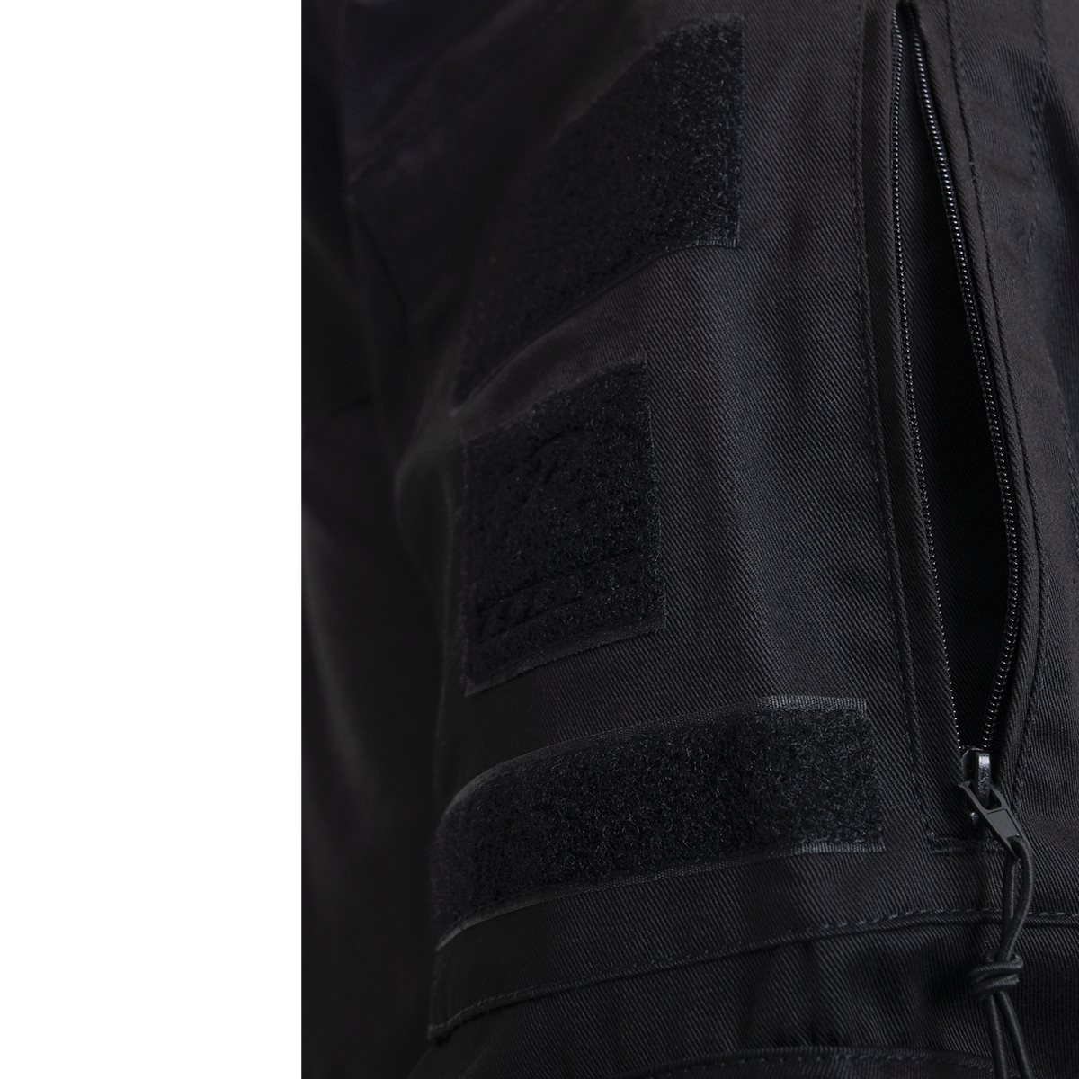 En revanche, les manches sont fabriquées dans un matériau plus résistant, les coudes étant encore plus renforcés. Les deux manches sont dotées de poches à fermeture éclair et de bandes velcro.