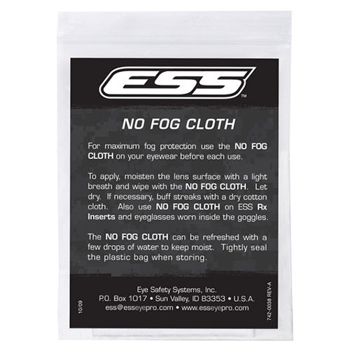 Chiffon de nettoyage pour lunettes ESS NO FOG. Imprégné d'une émulsion spéciale qui réduit la formation de buée sur les lunettes. Réutilisable. Peut être utilisé sur tous les types de lunettes, y compris les lunettes de vue. Plus d'informations
