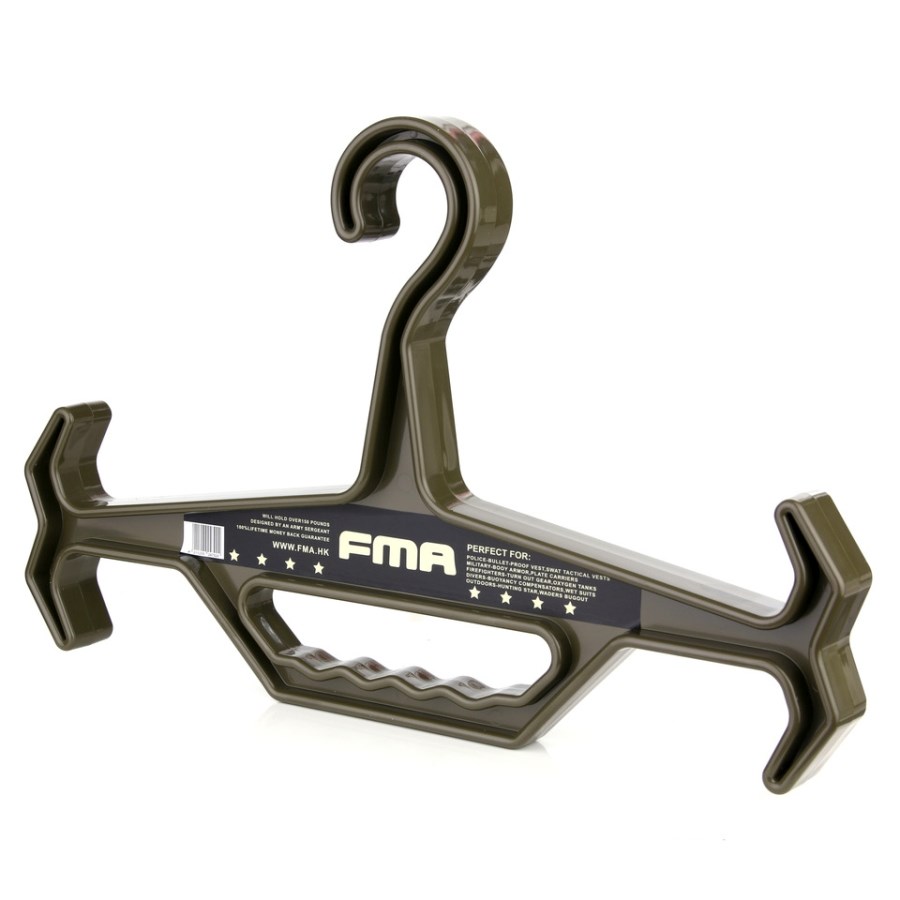 Cintre en plastique résistant conçu pour les vêtements lourds et les gilets tactiques. Possibilité de le retourner et de l'utiliser pour le transport à l'aide de la poignée.