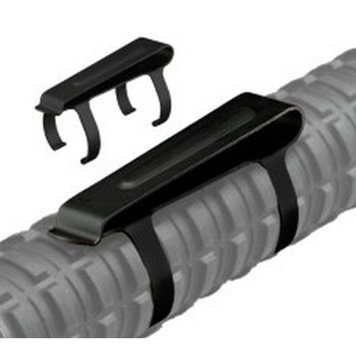 Le clip métallique BC-01 s'installe facilement sur la matraque télescopique et permet ainsi de la porter discrètement à la ceinture, à l'intérieur ou à l'extérieur du pantalon, ou encore sur un gilet tactique.