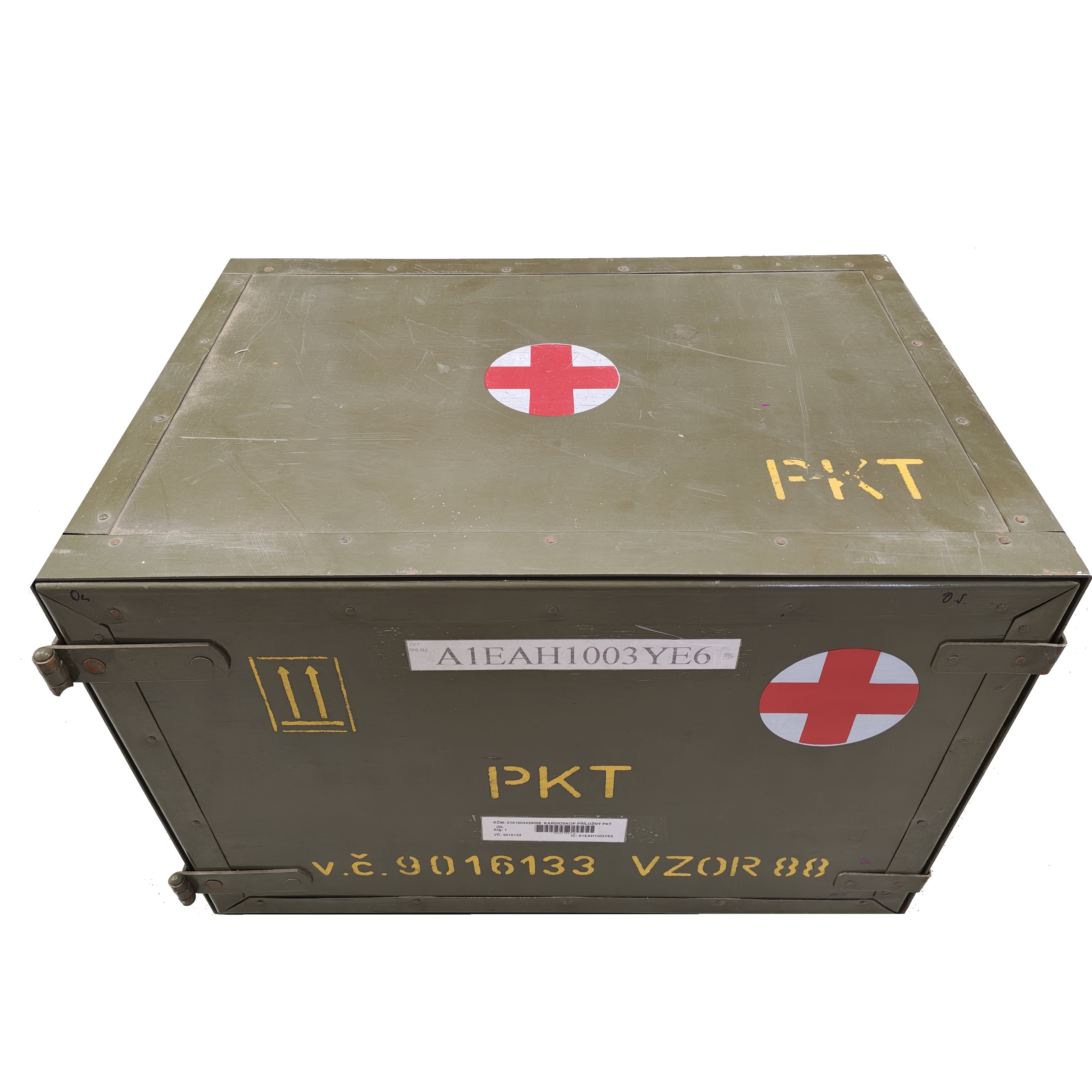 Les caisses comportent à l'intérieur des compartiments pour le matériel et des sangles de fixation en cuir, qui servaient à protéger le matériel médical ; celles-ci peuvent être retirées.