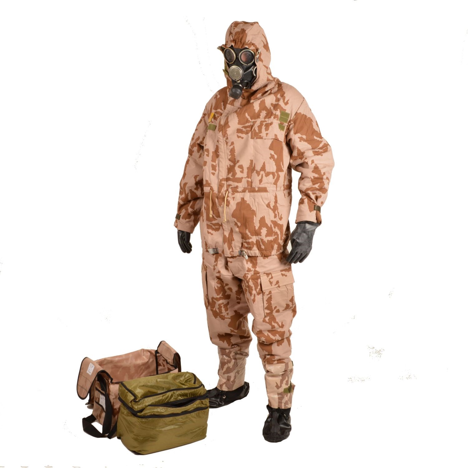 La combinaison de protection filtrante (FOP-96) en camouflage sable modèle 95 est un vêtement destiné à protéger la surface du corps contre : les vapeurs, les aérosols et les gouttelettes de substances de combat, les retombées radioactives, les Plus d'informations