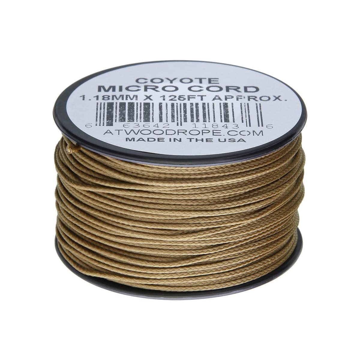Cordon micro paracord de haute qualité, fabriqué aux États-Unis par le célèbre fabricant ATWOOD ROPE. Le cœur est composé de plusieurs brins d'un diamètre total de 1,18 mm. Longueur totale d'environ 38 m - enroulé sur une bobine en plastique. Matériau : nylon.
