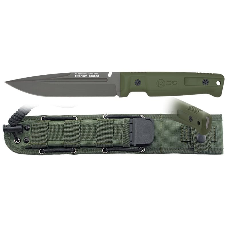 Couteau Fulltang à lame fixe, dont l'apparence s'inspire des couteaux tactiques classiques. La lame à tranchant lisse est fabriquée en acier inoxydable 4Cr13MoV et sa surface est recouverte d'un revêtement en titane qui améliore la résistance mécanique et limite la formation de reflets indésirables. Le manche est en caoutchouc avec une surface antidérapante et est conçu pour offrir une prise en main optimale dans toutes les situations. Le couteau est livré avec un étui en nylon pratique avec fermeture à pression.
