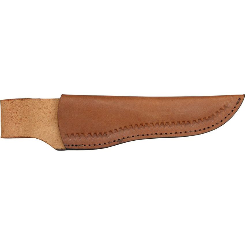 Couteau de chasse robuste à construction pleine soie. La lame à tranchant lisse est fabriquée en acier inoxydable et sa surface est polie pour obtenir un brillant intense. La partie supérieure de la lame comporte une surface pour le pouce permettant un travail précis. Le manche anatomique est fabriqué à partir d'une combinaison de bois et d'inserts en corne de cerf. Le couteau est livré avec un étui en cuir pour ceinture.