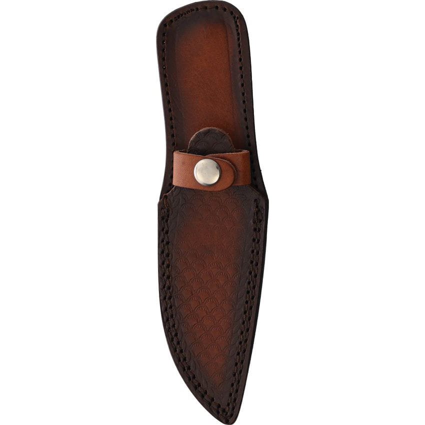 Couteau de chasse à lame fixe de conception full-tang, d'apparence agréable, livré avec un étui en cuir fermé par un bouton-pression. Plus d'informations