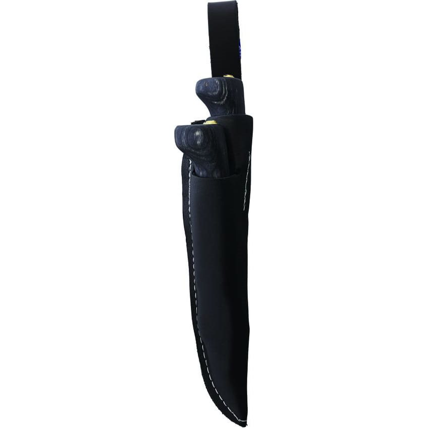 Ensemble de deux couteaux scandinaves de conception compacte et d'utilisation polyvalente. Les lames des couteaux sont fabriquées en acier au carbone résistant et disposent toutes deux d'un tranchant lisse. Le plus petit des deux couteaux est également doté d'un tranchant sur le dos. Les manches des couteaux sont en bois noirci. Les couteaux sont livrés avec un étui en cuir pour ceinture.