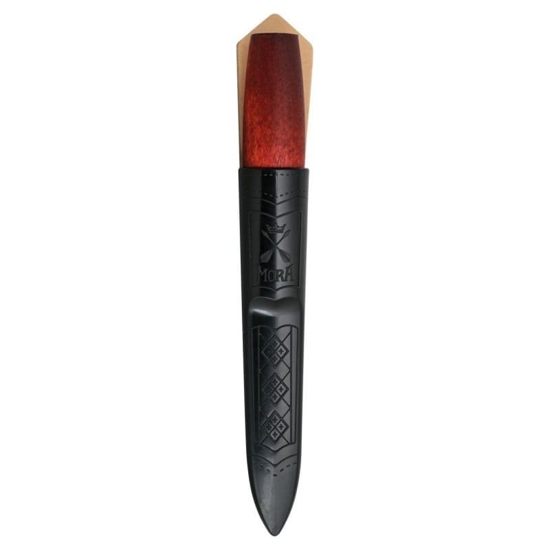 Couteau de qualité au design emblématique, qui rend hommage à la tradition artisanale suédoise. La lame du couteau est fabriquée en acier au carbone d'une dureté de 59-60 HRC avec un affûtage scandinave lisse, réputé pour sa grande résistance à l'usure. Le manche est en bois de bouleau laqué, agréable au toucher. L'étui en plastique du couteau est richement décoré, facile à nettoyer et dispose d'un orifice d'évacuation à l'extrémité. La boucle de ceinture est en cuir clair.