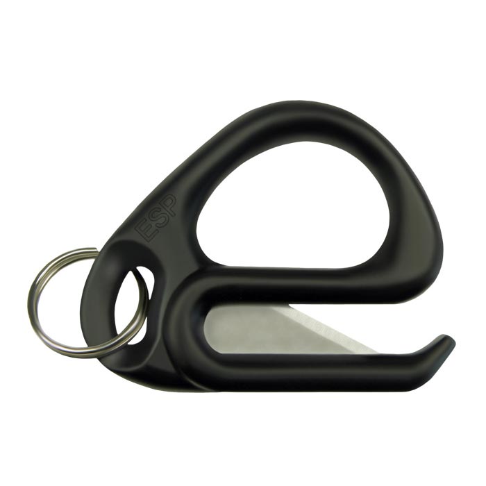 Forme ergonomique avec une ouverture pour une prise en main sûre et un œillet pour l'accrocher à l'équipement ou à un trousseau de clés. La lame du couteau est encastrée, ce qui évite les blessures lors de la manipulation. La partie en plastique du couteau a une forme spéciale qui permet de l'insérer facilement sous les menottes.