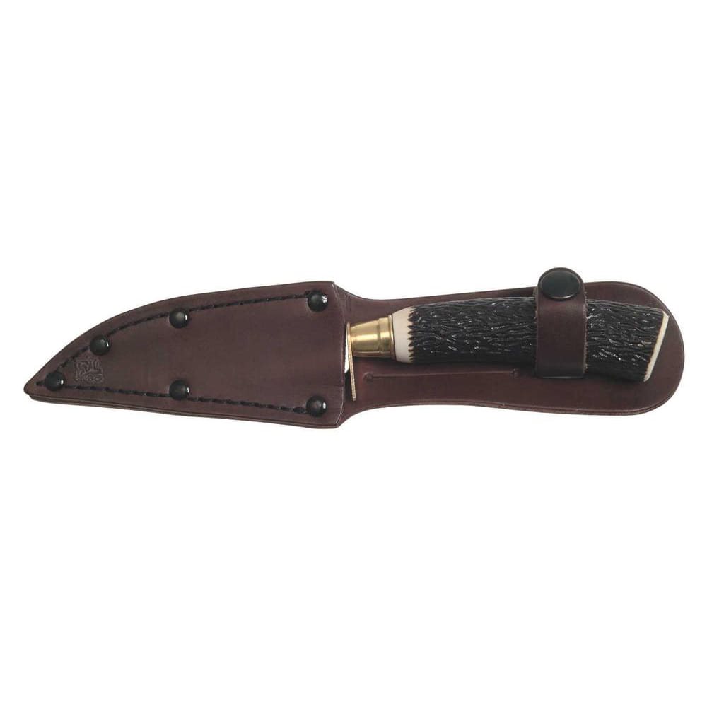 La lame du couteau est fabriquée en acier inoxydable de haute qualité de type 425 avec une dureté de 53-56 HRc. Le manche est une imitation très réussie de bois de cerf. Le couteau est livré en standard avec un étui en cuir.