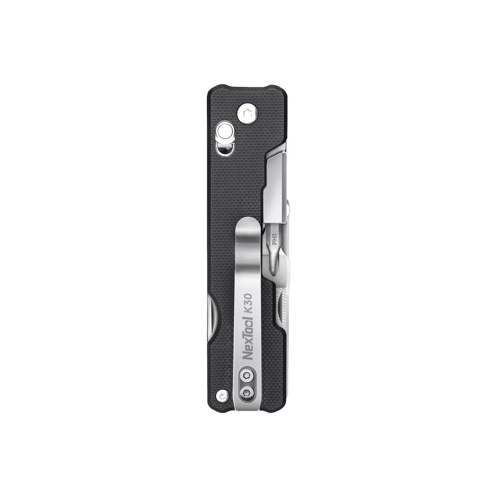 Le modèle K30 est conçu pour un port quotidien moderne et, en plus du couteau, propose également des ciseaux, un décapsuleur, un pied-de-biche, une pincette, une lime, un passe-fil et un système magnétique de bits de tournevis interchangeables. Le système amélioré NEX Scissors System 2.0 avec tranchant dentelé offre une coupe plus forte et plus stable, vous permettant d’accomplir les tâches quotidiennes sans changer d’outil.