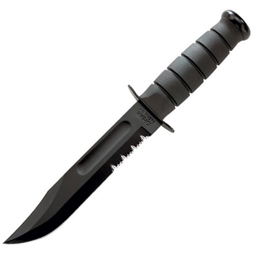 Couteau de combat à lame combinée. Acier au carbone 1095 (56-58HRC) inoxydable. Longueur de la lame : 17,8 cm, longueur totale : 30,2 cm. Plus d'informations