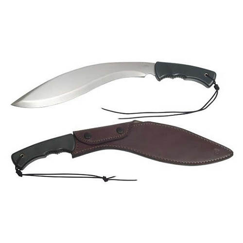 Le couteau GURU présente la forme classique d'une machette arrondie avec un manche ergonomique.