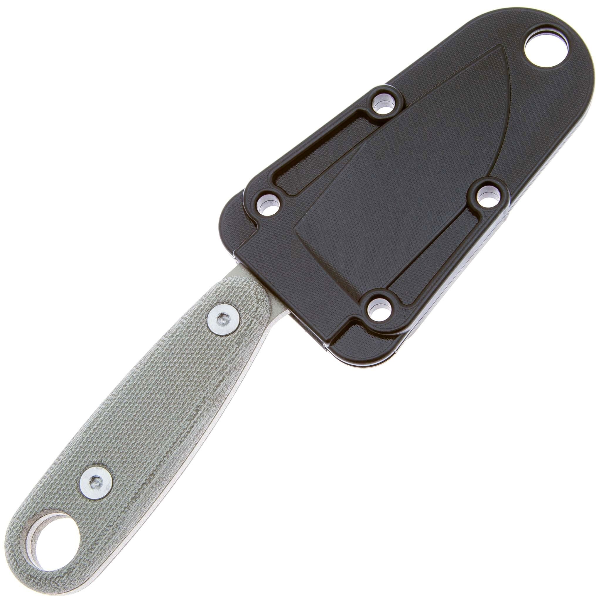 Couteau EDC compact à lame fixe, construction full tang et plusieurs options de transport. Fabriqué aux États-Unis. Plus d'informations