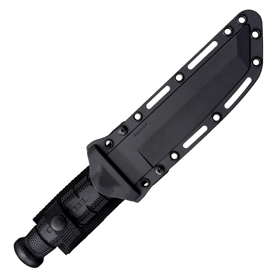 Le couteau Cold Steel Leatherneck est doté d'une lame de type tanto de près de 18 cm en acier inoxydable allemand D2 avec revêtement noir. La poignée est fabriquée dans un matériau antidérapant agréable au toucher appelé Griv-ExTM.