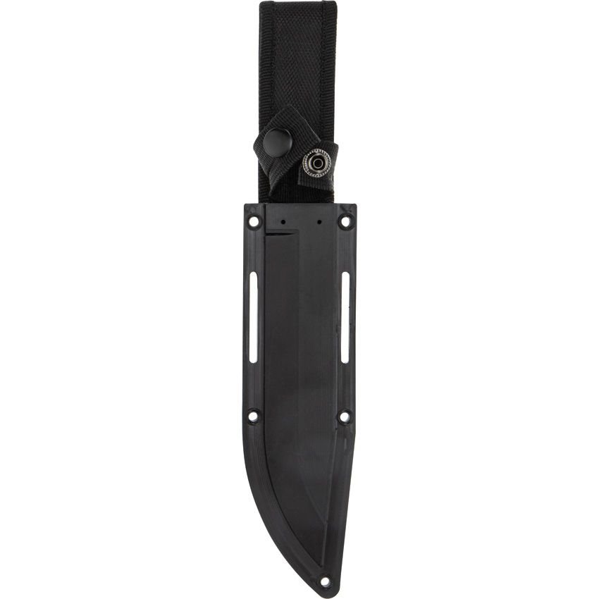 Couteau de survie ultime avec lame fixe et construction pleine soie. La lame est fabriquée en acier inoxydable 8Cr13MoV avec un tranchant lisse et une forme clip point. Une petite scie est située sur le dos de la lame. Le manche est arrondi, équipé d'une garde massive et recouvert de caoutchouc pour une prise en main agréable dans toutes les situations. À l'extrémité du manche se trouve une surface pouvant être utilisée pour enfoncer des clous. Le couteau est livré avec un étui en plastique pour ceinture, dans lequel il est fixé à l'aide d'un bouton-pression.