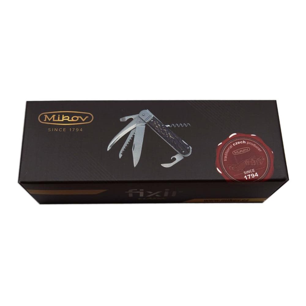 Le couteau de chasse FIXIR est équipé d'une lame en acier inoxydable 440A de haute qualité d'une dureté de 54-57 HRc. La lame du couteau de chasse FIXIR présente un affûtage conique, ce qui permet non seulement une meilleure coupe, mais aussi un entretien plus facile. Ce type de couteau de chasse FIXIR est également équipé d'une scie de qualité avec deux rangées de dents. De plus, ce couteau de chasse FIXIR est équipé d'un tire-bouchon, d'un ouvre-boîte et d'un décapsuleur, qui peut également être utilisé comme tournevis plat ou pour retirer l'isolation. Le couteau de chasse FIXIR est livré avec un coffret cadeau en papier, l'étui en cuir n'est pas inclus dans l'emballage. Les manches du couteau de chasse pliant FIXIR sont fabriqués en imitation de bois de très haute qualité. Le couteau de chasse FIXIR est livré avec un coffret en papier. Le couteau de chasse pliant FIXIR est un produit traditionnel de la société Mikov Mikulášovice, située en Suisse tchèque.