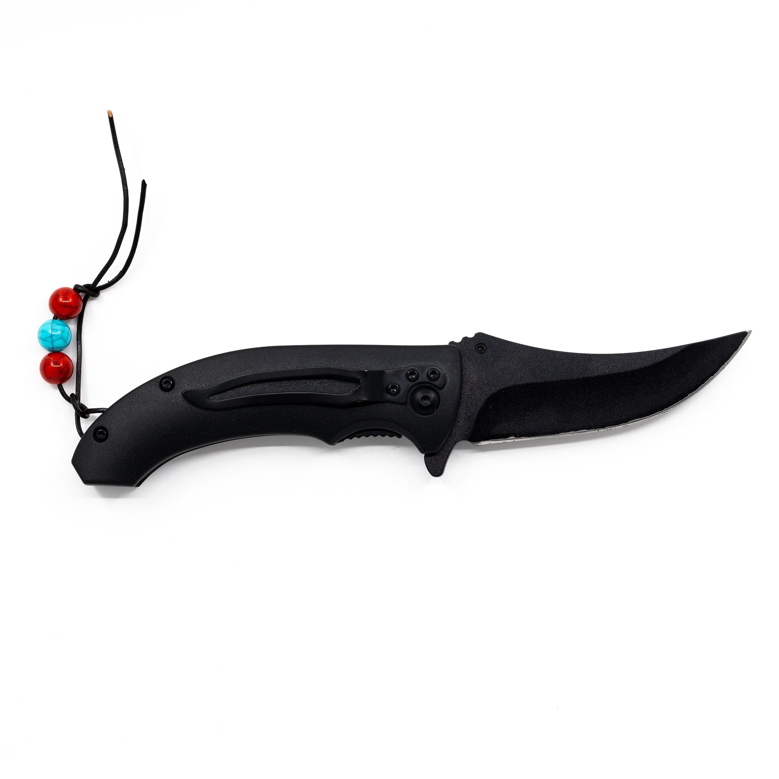Couteau pliant au design original inspiré de la culture amérindienne. La lame du couteau est fabriquée en acier inoxydable 3Cr13Mov avec un noircissement prononcé et une impression. Il est doté d'une pointe très prononcée, d'un tranchant lisse, d'une goupille double face pour une ouverture facile et d'un flipper. Une fois ouverte, la lame est sécurisée par un verrouillage LinerLock fiable. Le manche est conçu pour offrir une prise en main agréable et est fabriqué en plastique ABS durci. Une cordelette de sécurité est intégrée à l'extrémité du manche.