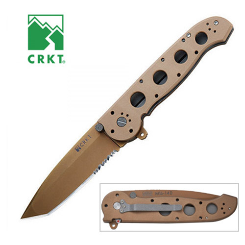 Grand couteau pliant robuste entièrement métallique de la société américaine CRKT, apprécié pour ses propriétés, notamment par les membres des forces armées. Il s'agit d'un outil de travail polyvalent sur lequel vous pouvez compter à tout moment. La lame de forme tanto est fabriquée en acier AUS 8 de haute qualité d'une dureté de 58-59 HRC avec un revêtement en nitrure de titane qui augmente considérablement sa résistance à la corrosion. Le tranchant est partiellement dentelé. La lame est équipée d'un pivot double et d'un flipper pour une ouverture rapide et pratique d'une seule main. Une fois ouverte, le flipper sert de garde. Le couteau est équipé d'un verrouillage linerlock fiable avec verrouillage automatique grâce au système AutoLAWKS qui, grâce à un loquet à ressort, soutient la lame du linerlock et empêche ainsi tout déverrouillage accidentel de la lame, même en cas de manipulation brutale. Le manche est fabriqué en aluminium de haute qualité et, tout comme la lame, il est de couleur sable. Le clip permettant d'accrocher le couteau à une poche, à la ceinture ou à un pantalon peut être déplacé à quatre endroits différents du manche, selon votre préférence.