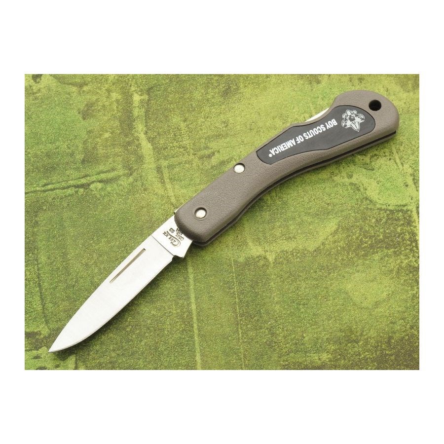 Petit couteau pliant à lame lisse d'une longueur totale d'environ 140 mm (longueur fermé : environ 83 mm). Matériaux utilisés : lame - acier inoxydable chirurgical, manche - zytel. Fabriqué aux États-Unis. Plus d'informations