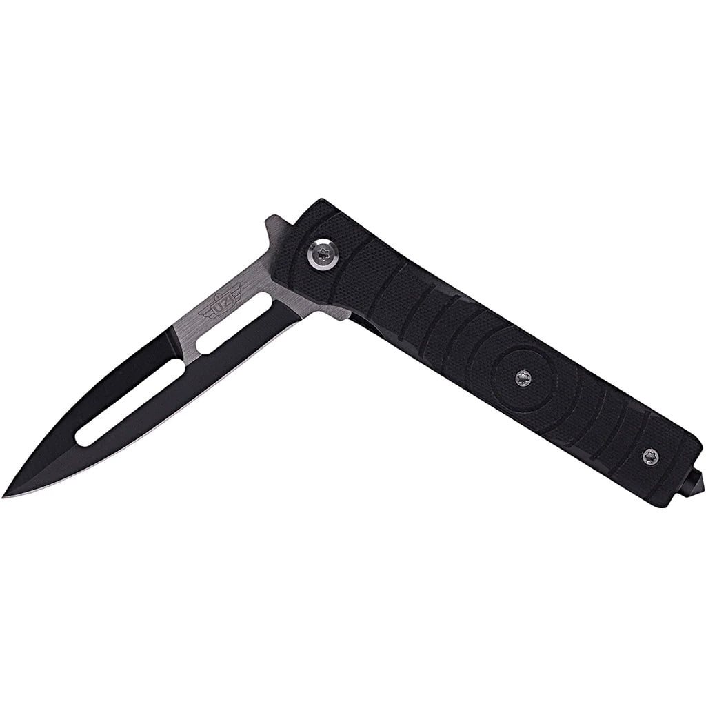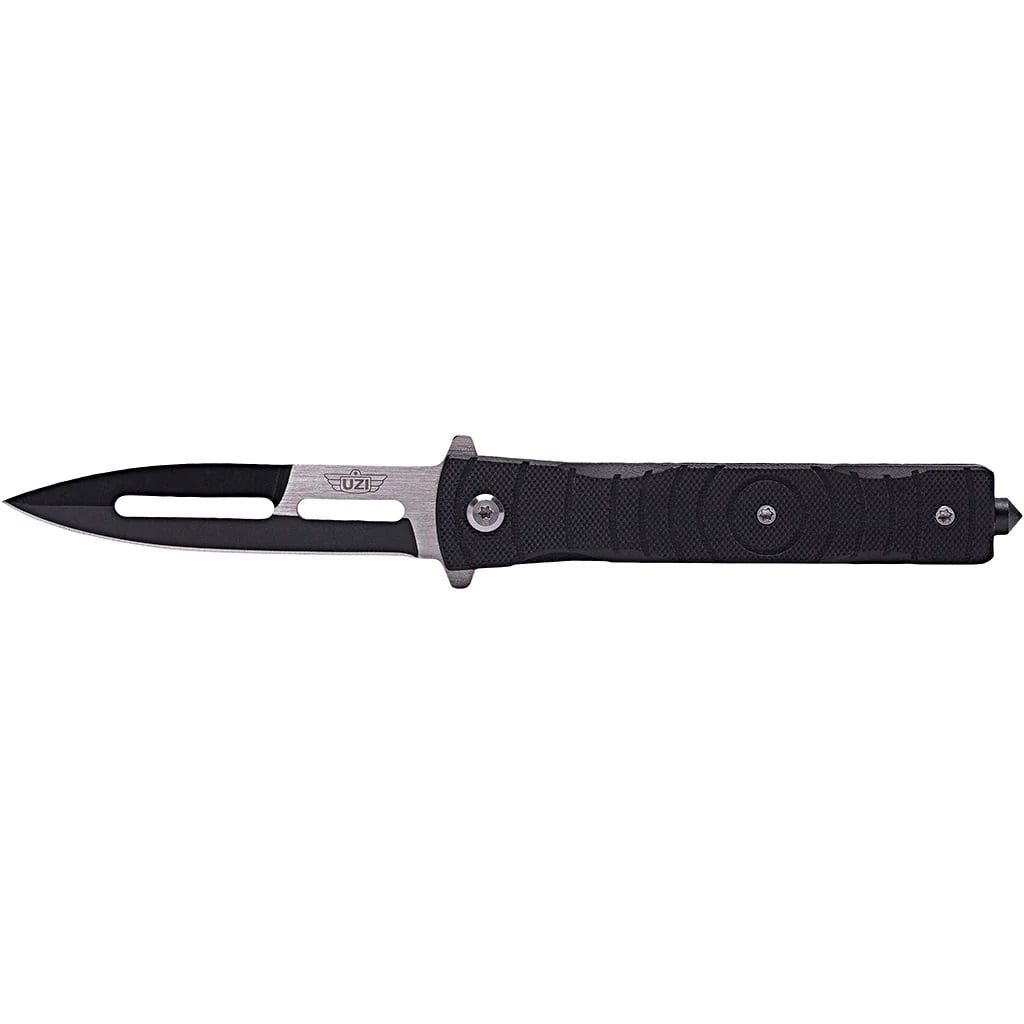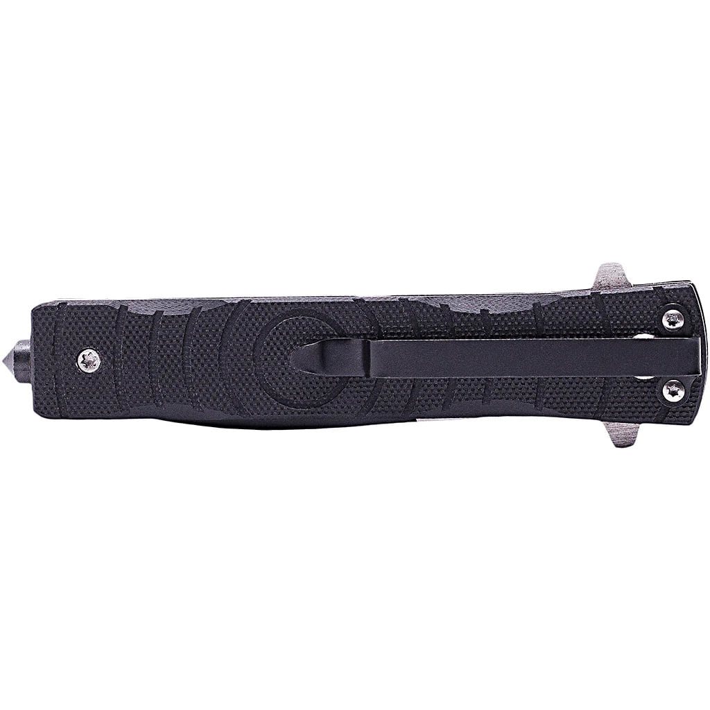Couteau pliant élégant équipé d'un système d'ouverture assistée par ressort. La lame du couteau, dotée d'un tranchant lisse, est fabriquée en acier inoxydable et comporte des découpes prononcées qui allègent le couteau. Une fois ouverte, la lame est sécurisée par un verrouillage LinerLock fiable. Le manche est recouvert d'une texture antidérapante douce et les plaquettes sont en G10, un matériau très résistant. À l'extrémité du manche, vous trouverez également un brise-vitre pratique.