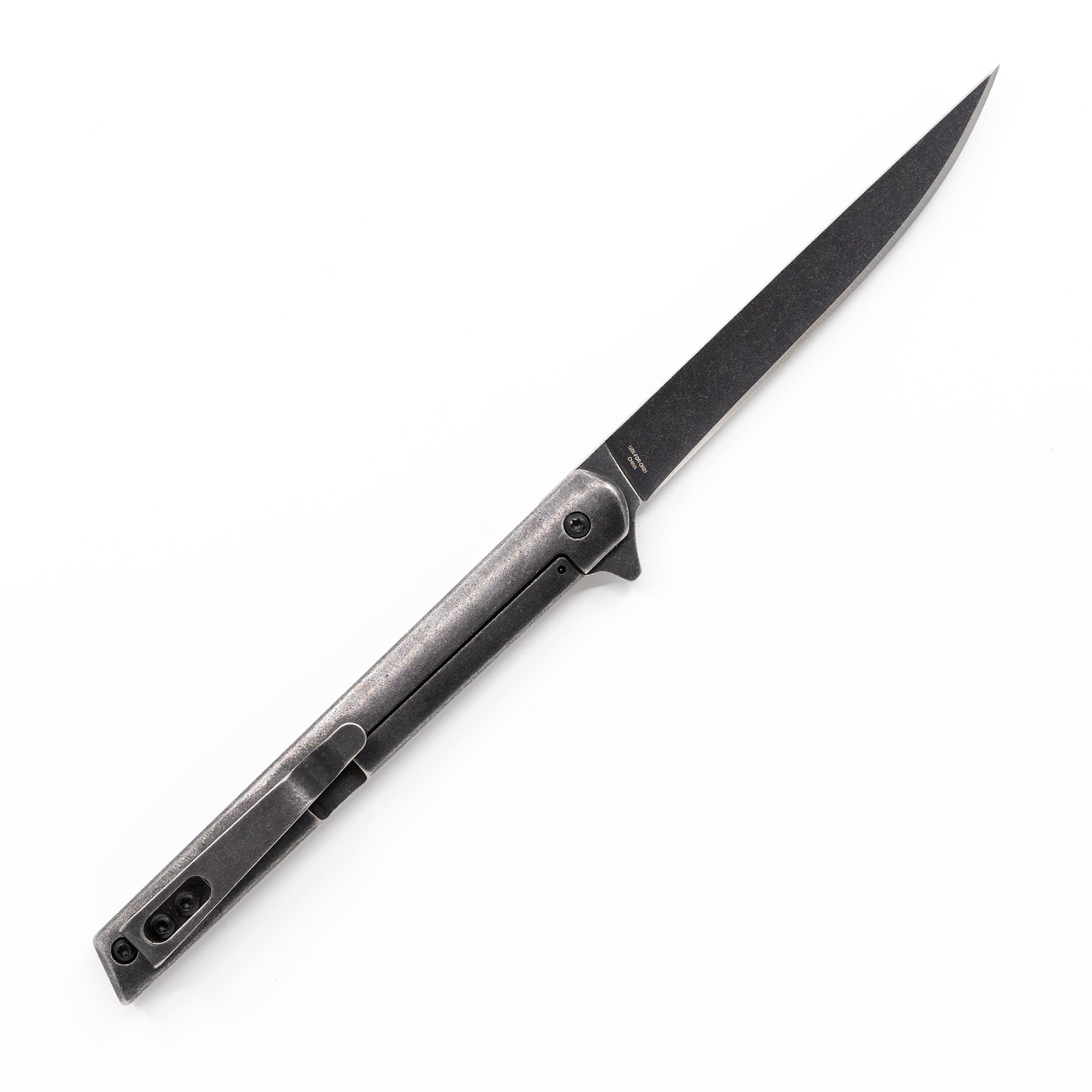 Couteau EDC léger avec une lame extrêmement étroite, livré dans un coffret cadeau. La lame lisse est fabriquée en acier inoxydable 440 avec un revêtement noir distinctif et est équipée d'un flipper pour une ouverture facile. Une fois ouverte, la lame est sécurisée par un verrouillage FrameLock fiable. Les manches du couteau sont fabriqués en acier inoxydable résistant et sont équipés d'un clip de poche métallique pour un transport facile.