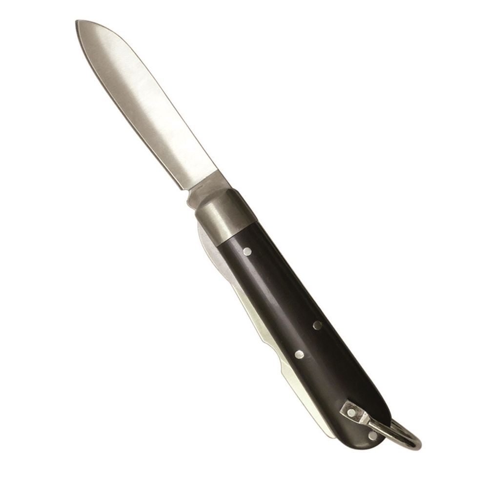 Couteau pliant de qualité de la marque MIL-TEC. Manche en plastique avec œillet. Couteau équipé d'un ouvre-bouteille. Longueur de la lame : 70 mm. Longueur totale : 160 mm. Plus d'informations