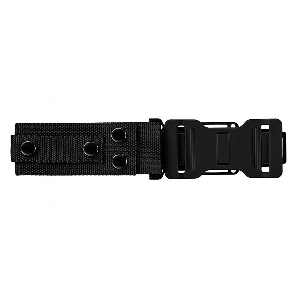 Les accessoires du couteau comprennent également un étui en plastique à fermeture automatique, une sangle en nylon étroite et large avec des boutons-pression et une plaque de montage en plastique avec une fourche de sécurité. Le couteau peut être porté de trois façons :