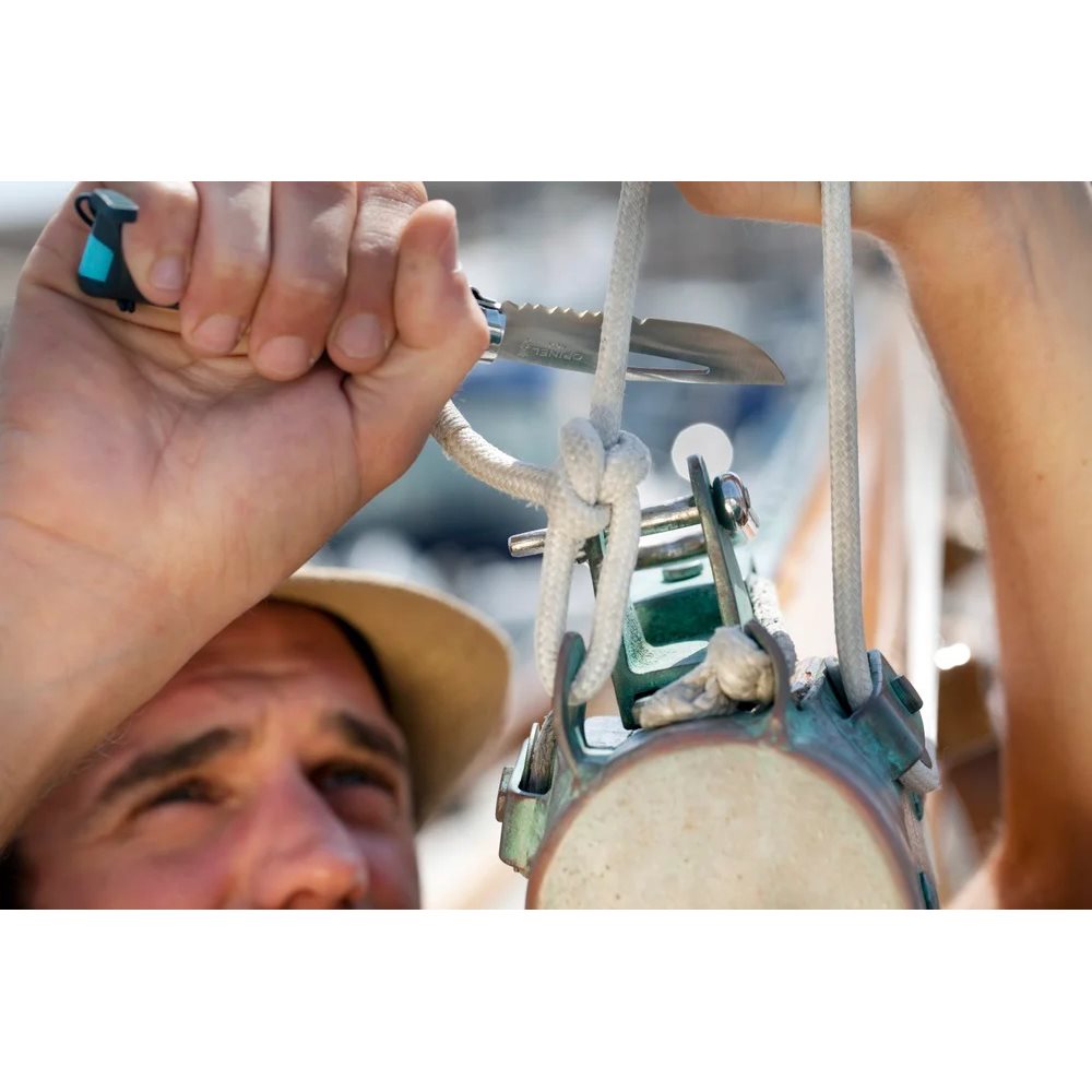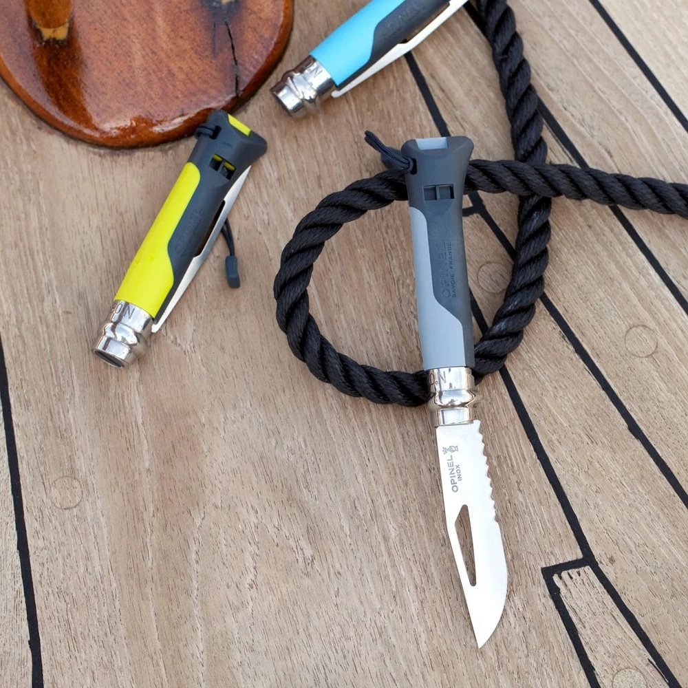 Le couteau Opinel VR N°08 OUTDOOR INOX de couleur verte est multifonctionnel et convient à tous les amateurs d'activités de plein air. Il permet de couper des brindilles et de sectionner des cordes d'escalade (jusqu'à 3,5 cm de diamètre). Il est également équipé d'un sifflet à bille fonctionnel. La lame de 8,5 cm de long est fabriquée en acier suédois 12C27 (Sandvik) de haute qualité, très résistant à la corrosion et ne nécessitant pratiquement aucun entretien. Le manche est fabriqué en polymère résistant et renforcé de fibre de verre. Ce matériau est imperméable et résiste à des températures extrêmes (-40 °C à +80 °C).