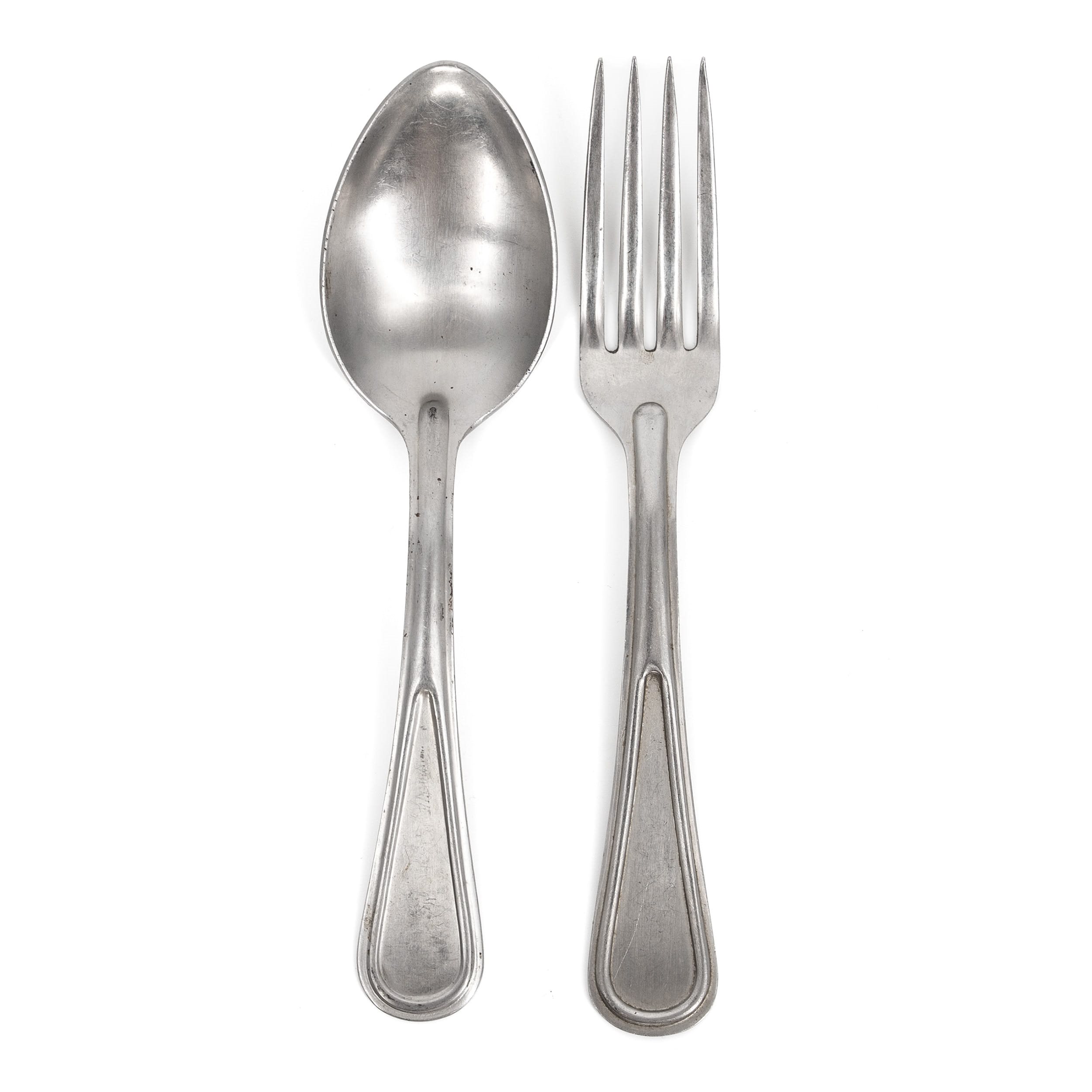 Cuillère à soupe profonde + fourchette. Longueur environ 19 cm, poids du set 95 grammes.