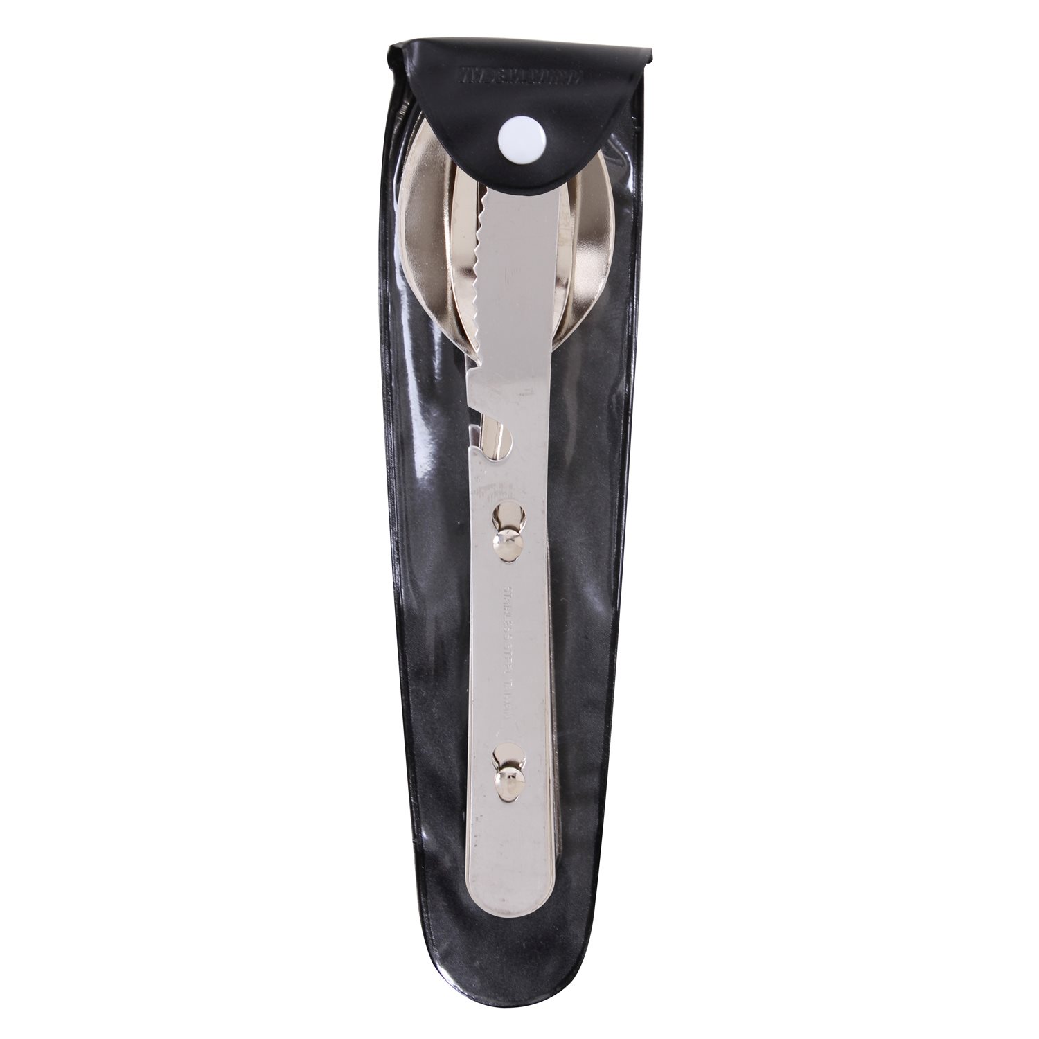 Couverts pliants ROTHCO pratiques. Comprend : un couteau, une fourchette et une cuillère. Étui en vinyle. Matériau : acier inoxydable. Plus d'informations
