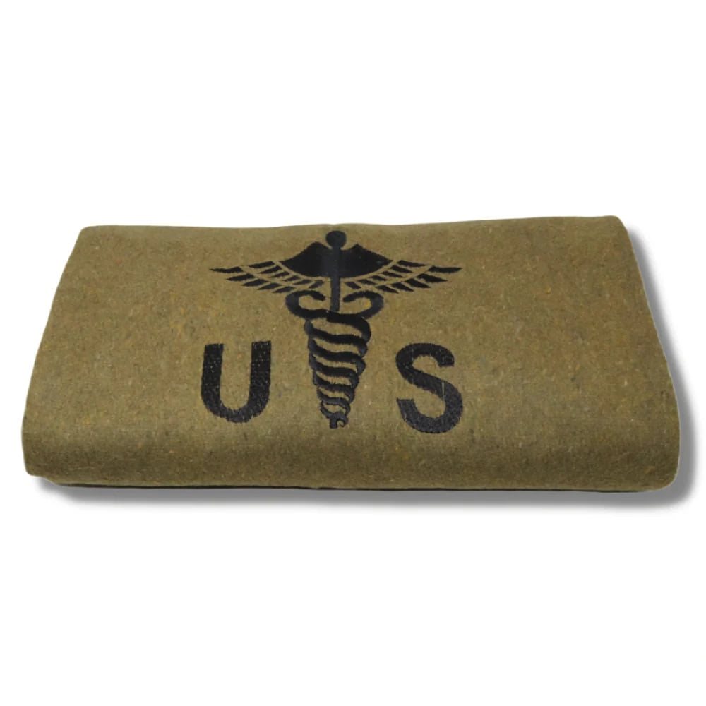 Couverture chaude fabriquée dans un mélange de 65 % de laine et 35 % de fibres synthétiques. Ce matériau conserve parfaitement la chaleur, sèche rapidement, résiste très bien aux moisissures et possède des propriétés ignifuges. La couverture est ornée du symbole du caducée, qui sert d'emblème aux infirmiers de l'armée américaine. Le symbole représente un caducée entouré de deux serpents ailés qui le recouvrent entièrement. Coutures contrastées.