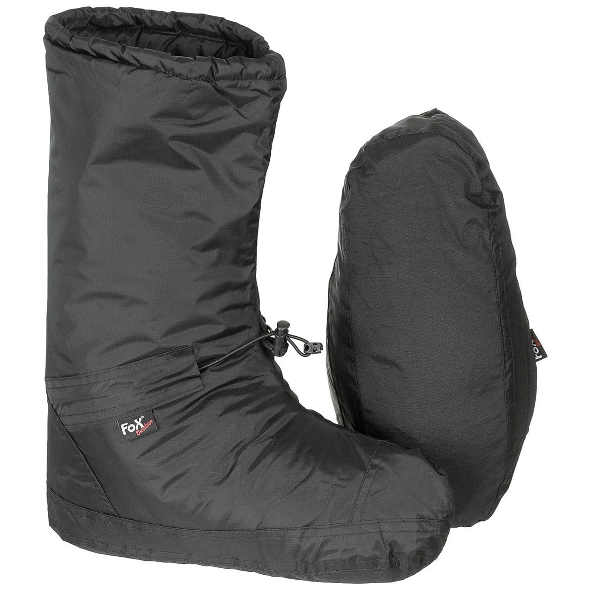 Peut être utilisé dans un sac de couchage ou comme chaussure de tente/chalet. Compressible et léger. Excellente isolation douce et chaude. Cordon élastique avec arrêt à hauteur des chevilles .