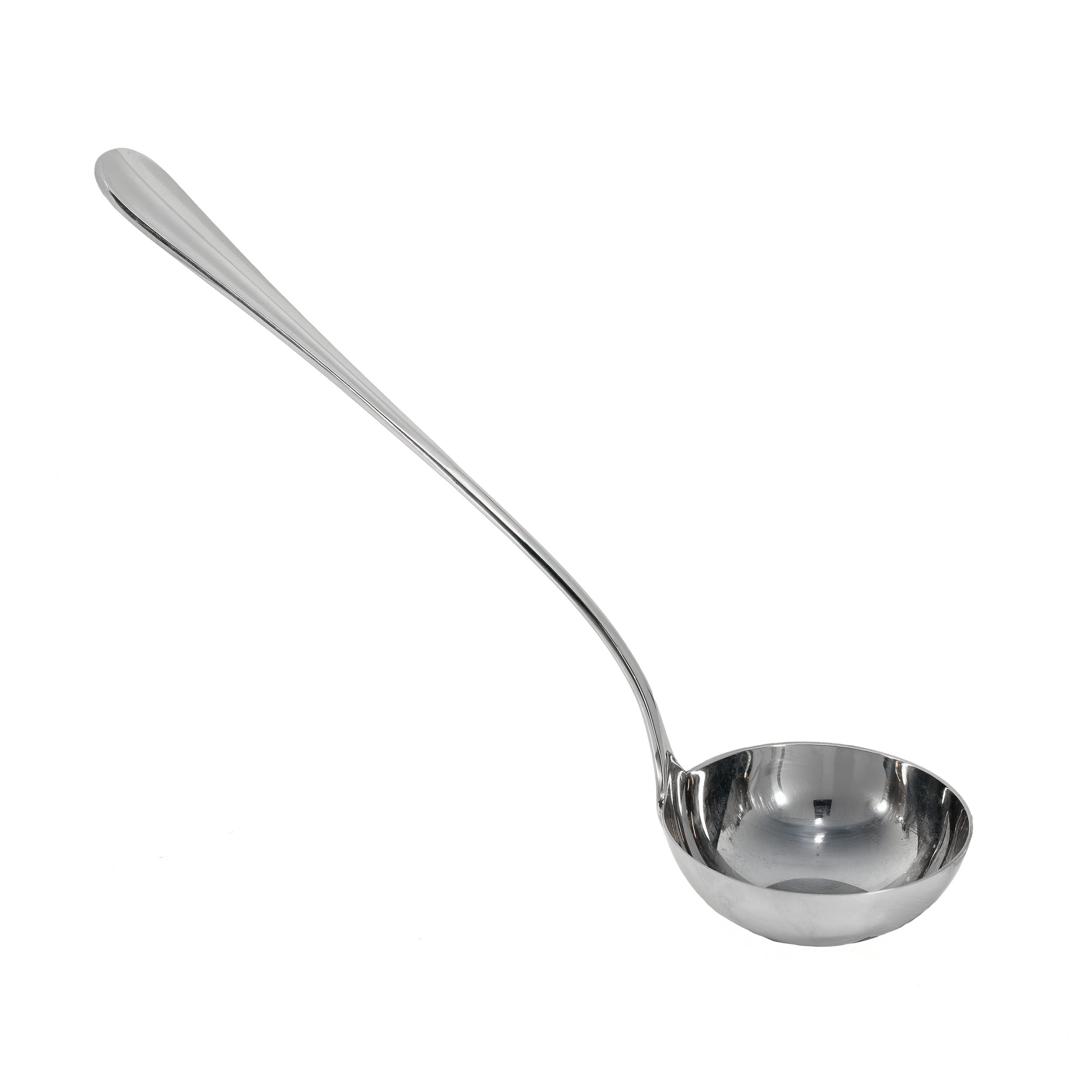 Louche Inoxriv avec surface brillante. Excellente forme et équilibre, agréablement lourde.