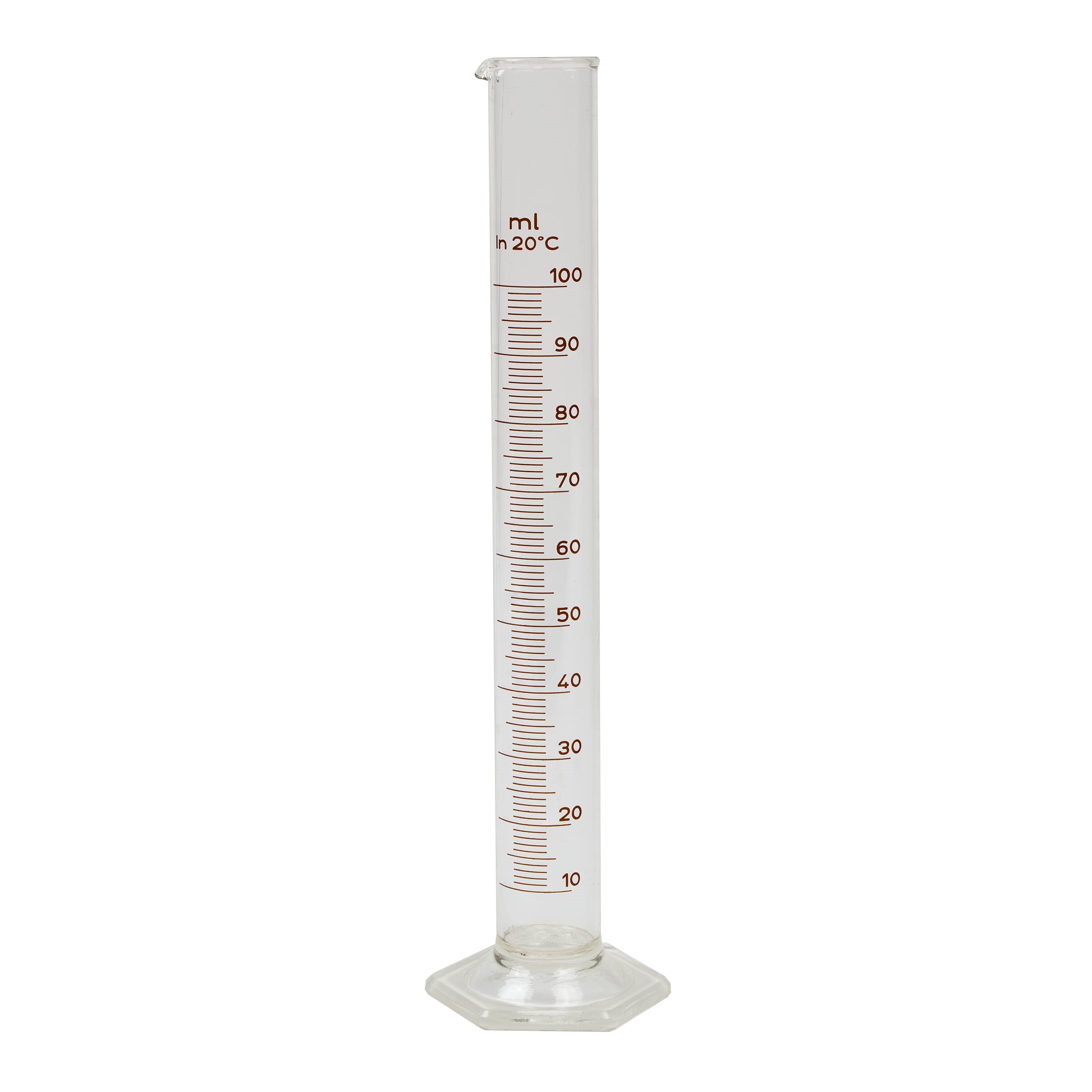 Échelle graduée en millilitres jusqu'à 100 ml (à 20 °C)