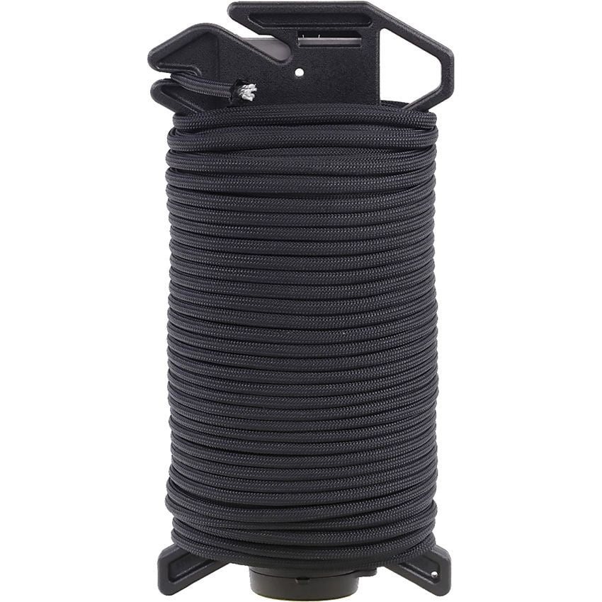 Distributeur pratique - dérouleur de cordon (cordon parachute/cordon de parachute/paracorde ou tout autre type de cordon). de cordon déroulé est coupée à l'aide d'un cutter intégré. Le centre du corps du dérouleur est creux et peut accueillir un briquet (non fourni). Sa fonction principale n'est pas, dans ce cas, d'allumer une cigarette, mais de sceller l'extrémité du cordon afin qu'il ne s'effiloche pas. Le paquet contient un cordon paracorde de 30 mètres que vous pouvez fixer pour éviter qu'il ne se déroule accidentellement en plaçant l'extrémité dans la découpe prévue à cet effet sur le distributeur. Le distributeur est muni de deux crochets métalliques qui permettent de l'accrocher à un sac à dos ou à un sac de sport.