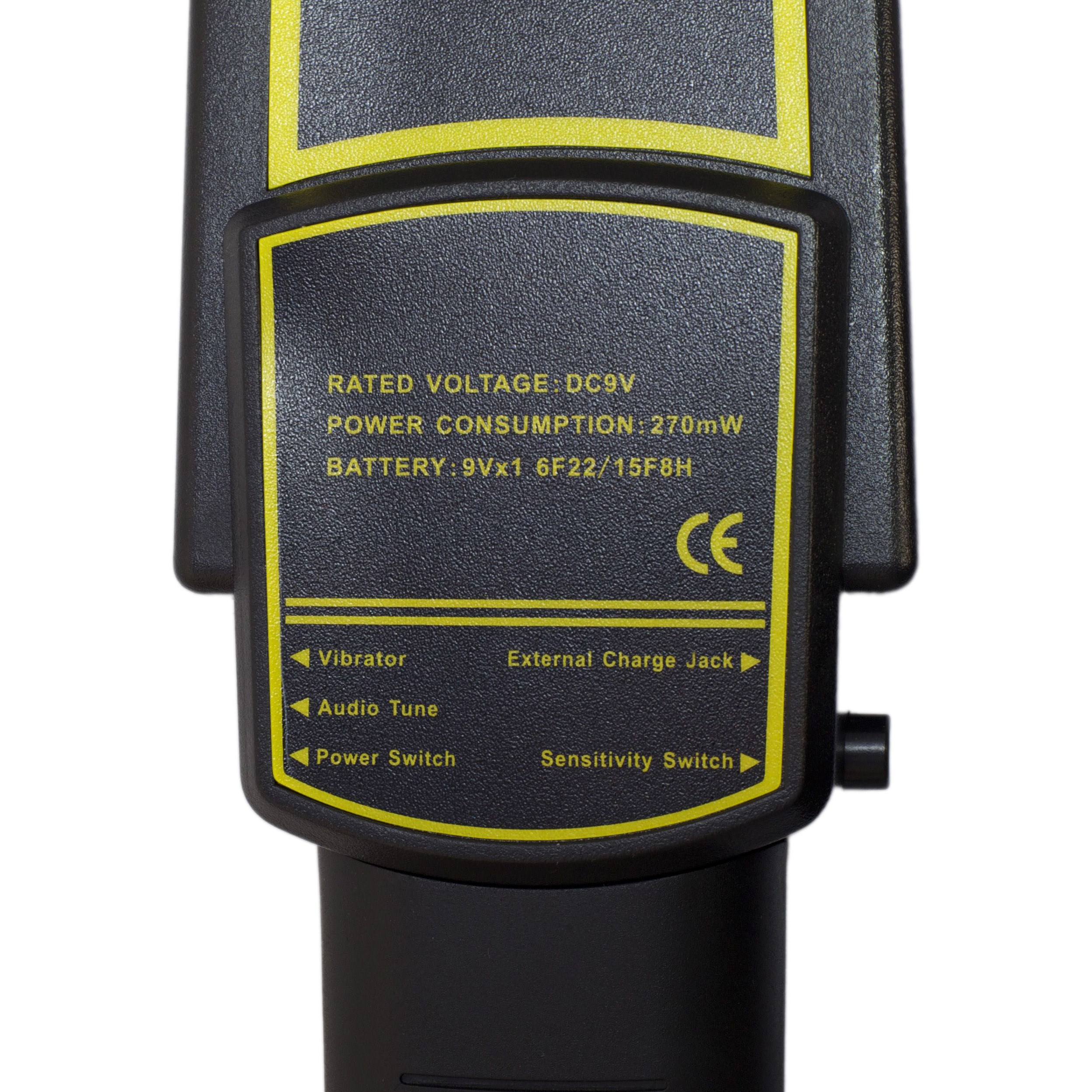 Détecteur de métaux fiable alimenté par une pile 9 volts (non fournie). Sortie audio ou vibrations. Dimensions compactes : 420 x 76 x 38 mm, poids de seulement 294 grammes. Matériau : plastique ABS résistant. Plus d'informations
