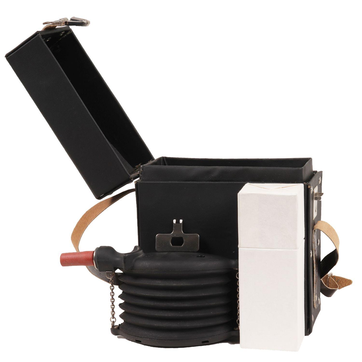 Description : le dispositif d'aspiration est constitué d'un soufflet en caoutchouc de forme ovale, fermé aux deux extrémités par des plaques recouvertes de parois latérales, le tout en matière plastique. La plaque avec une ouverture pour la mise en place de la valve est fixée à la paroi latérale arrière et, une fois la valve mise en place, forme une soupape d'échappement.