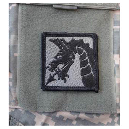 Écusson en tissu. Dimensions : environ 6 x 6 cm, avec velcro au dos.