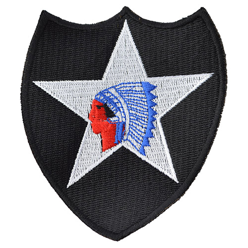Écusson représentant la 2e division de l'armée américaine. Dimensions : environ 9 x 11 cm. Plus d'informations
