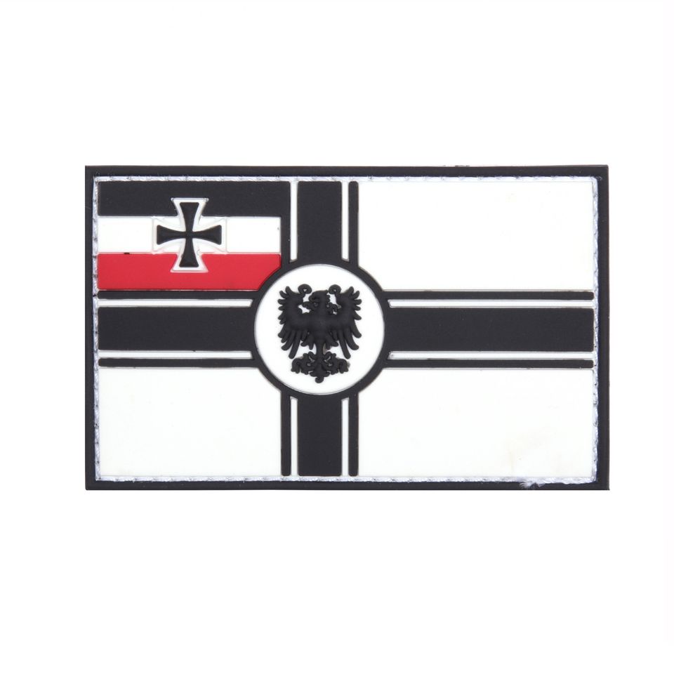 Écusson en plastique avec velcro, drapeau de l'Allemagne impériale. Représentation en 3D, forme rectangulaire, surpiqué. Dimensions : environ 8,3 x 5 cm.